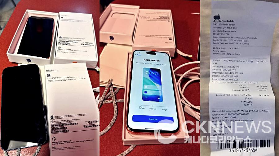 제보자가 공개한 위조 아이폰과 영수증(사진-캐나다코리안뉴스)