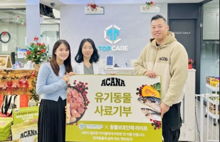 동물보호단체 ‘라이프’에 아카나 사료 전달 배우 남보라, 한국 탑케어동물의료원 동참 고품질 단백질 사료로 겨울철 영양 보충 기대 반려동물 건강 최우선, 사회공헌 지속 확대