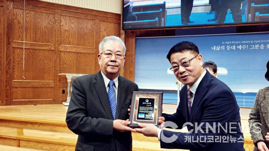 은퇴 감사패를 받고 있는 이순상 장로(사진-캐나다코리안뉴스)