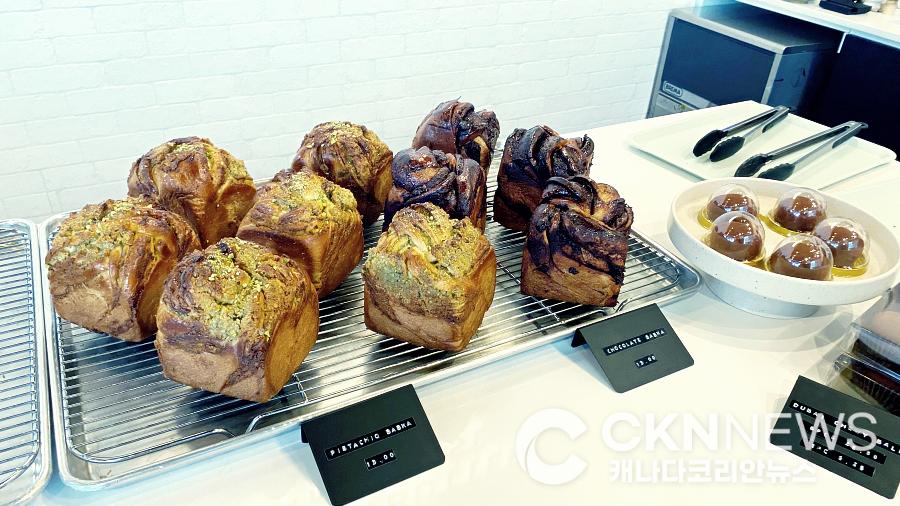 사진- 두바이 쫀득쿠키와 진열된 빵