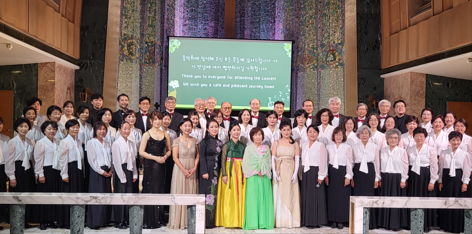 기념 사진을 촬영하고 있는 조혜라 동창회장과 참석자들