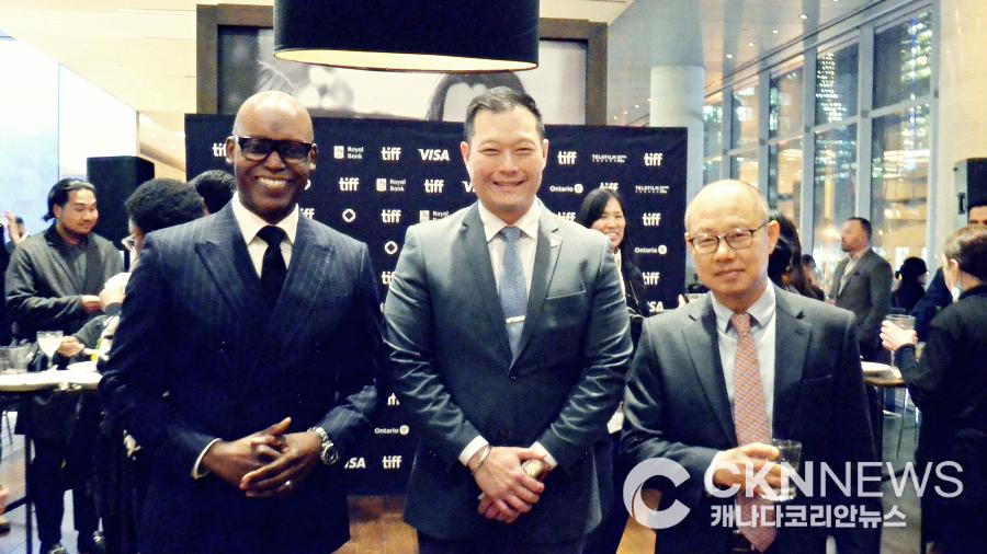 사진 왼쪽부터 TIFF 대표 캐머런 베일리, 조성훈 장관, 김영재 주토론토총영사관(사진-캐나다코리안뉴스, 무단 복제 및 재배포 금지)