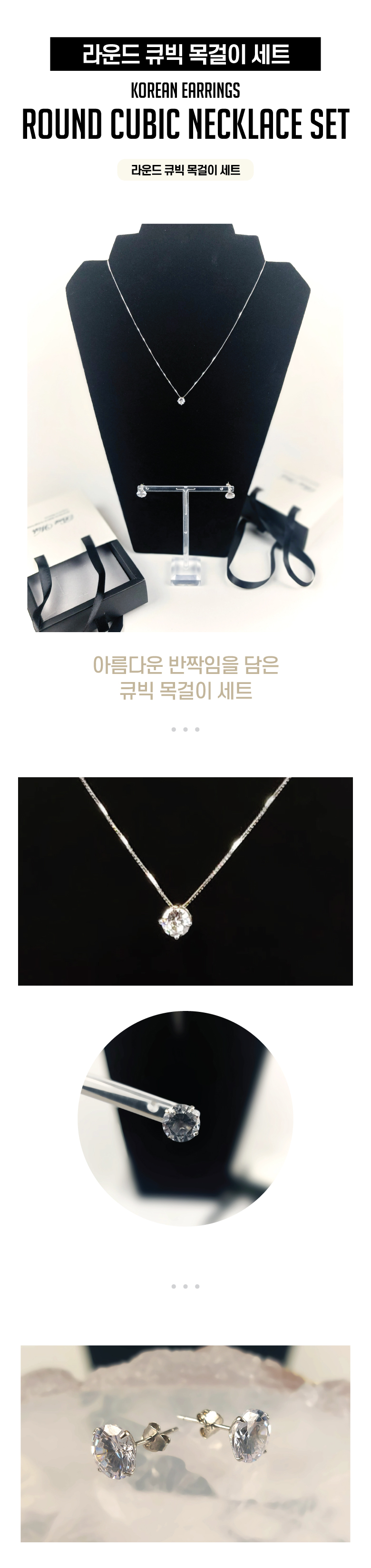목걸이와 귀걸이의 라운드 큐빅 세트입니다.